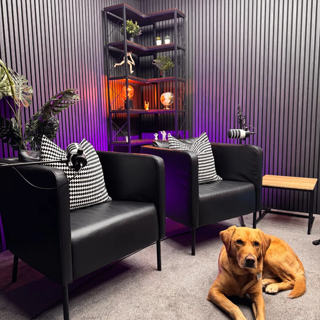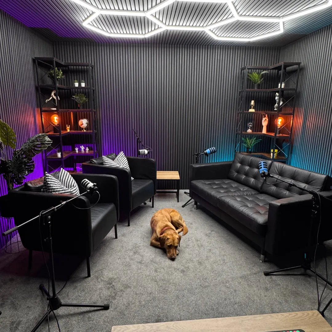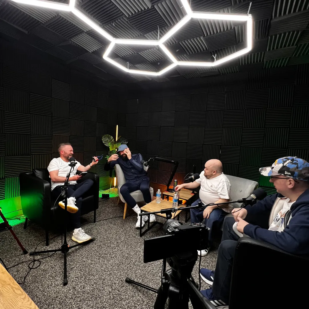 Our studio is located in Airdrie, North Lanarkshire. We have two fully equipped podcast studios that are available for hire, a private gym floor space and photoshoot backdrop to suit your needs.